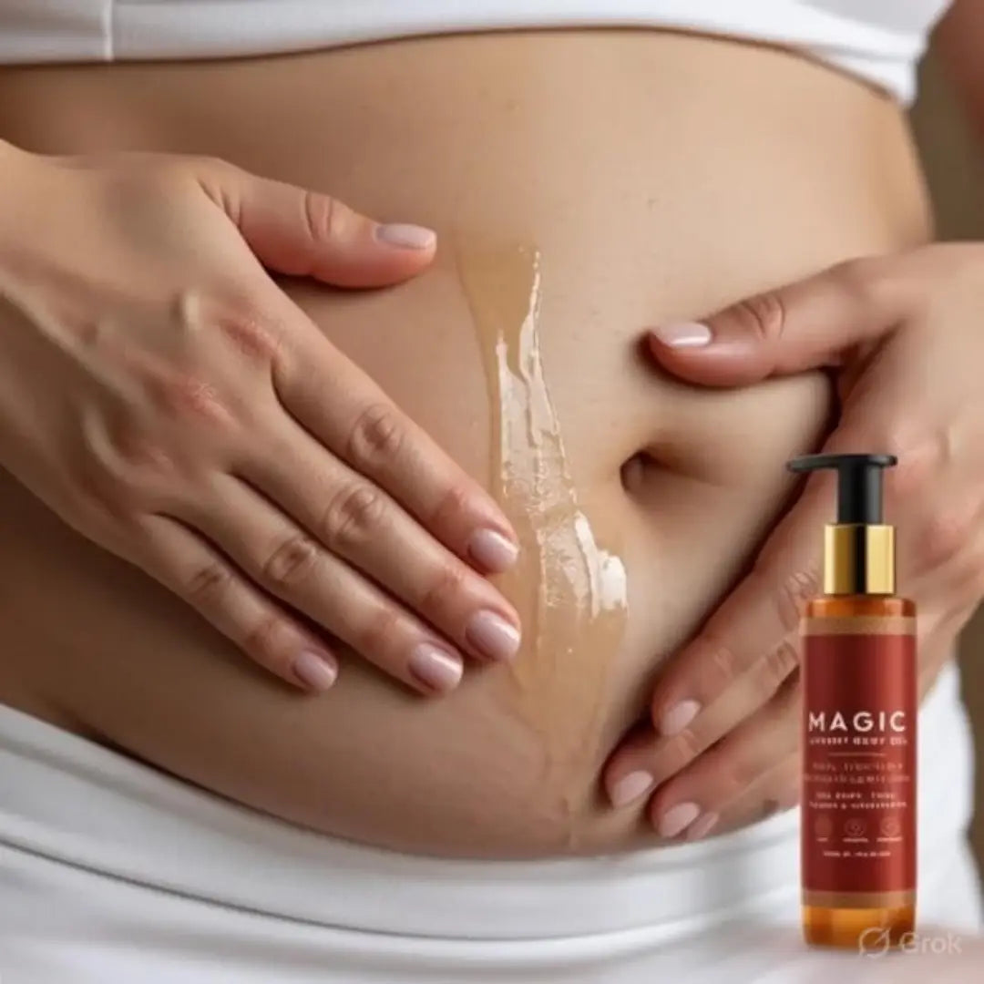 “Jag älskar denna kroppsolja – den hjälper faktiskt till att minska mina bristningar, som jag har haft sedan tonåren...”
